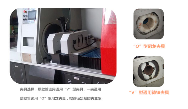 6、采用圓型尼龍夾具,對(duì)管件表面要求高的生產(chǎn)可避免表面劃傷,薄壁管夾持不會(huì)變形。
