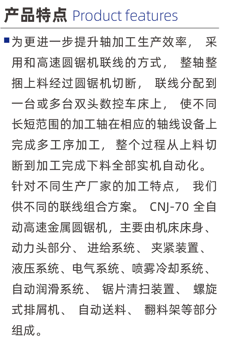 產(chǎn)品名稱: CNJ70暢能高速圓鋸+雙頭數(shù)控機(jī)床聯(lián)線托輥軸加工一體機(jī)