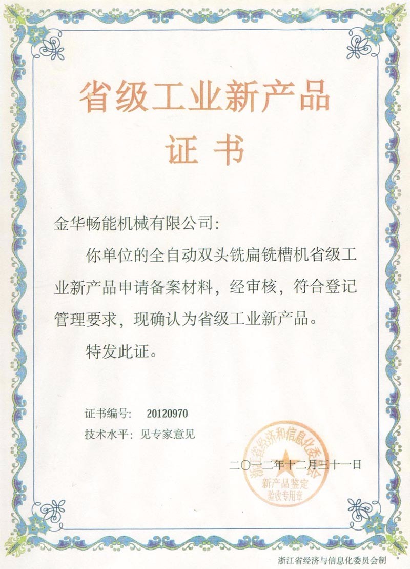名稱: 省工業(yè)新產(chǎn)品證書