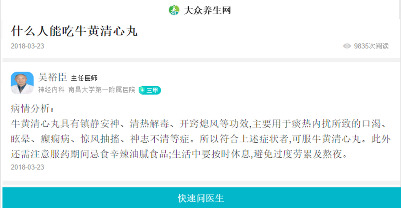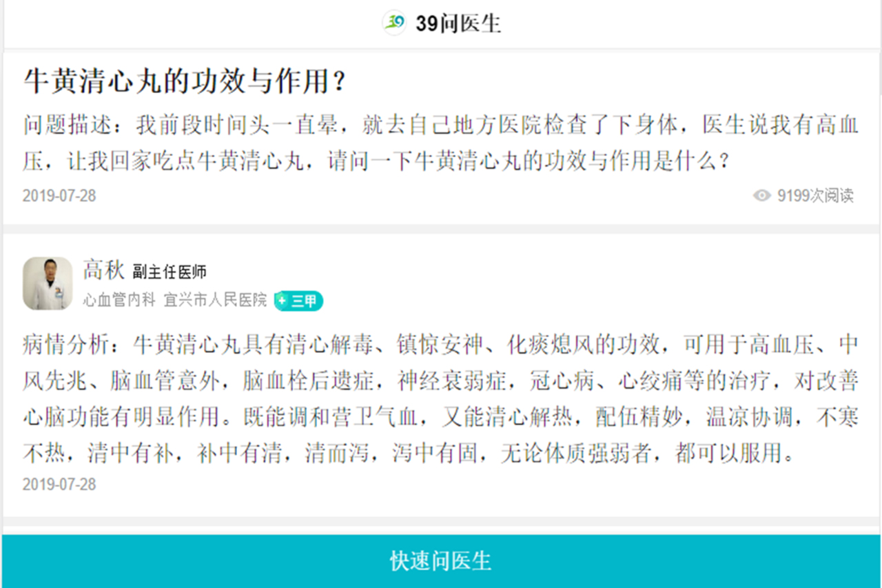 我們可以看到圖片上,密密麻麻,都是三甲醫(yī)院的醫(yī)生遠程回復的咨詢者關(guān)于牛黃清心丸的問題。越來越多的人在了解牛黃清心丸,越來越多的人通過牛黃清心丸身體達到了清調(diào)補的效果,擁有健康的人生。
